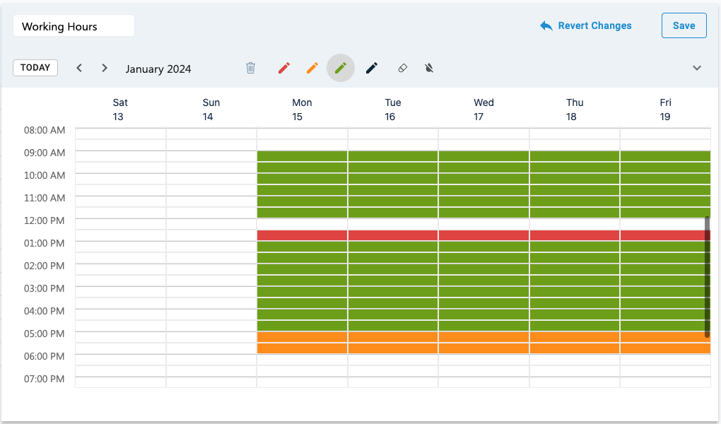 Apart from the pen colors that mark your available times in green, yellow, and red, the Time Map has another color for a different purpose: the highlight color. The highlight color is helpful when you're looking at the line detail. The Time Map chip background color is set to the Time Map highlight color.